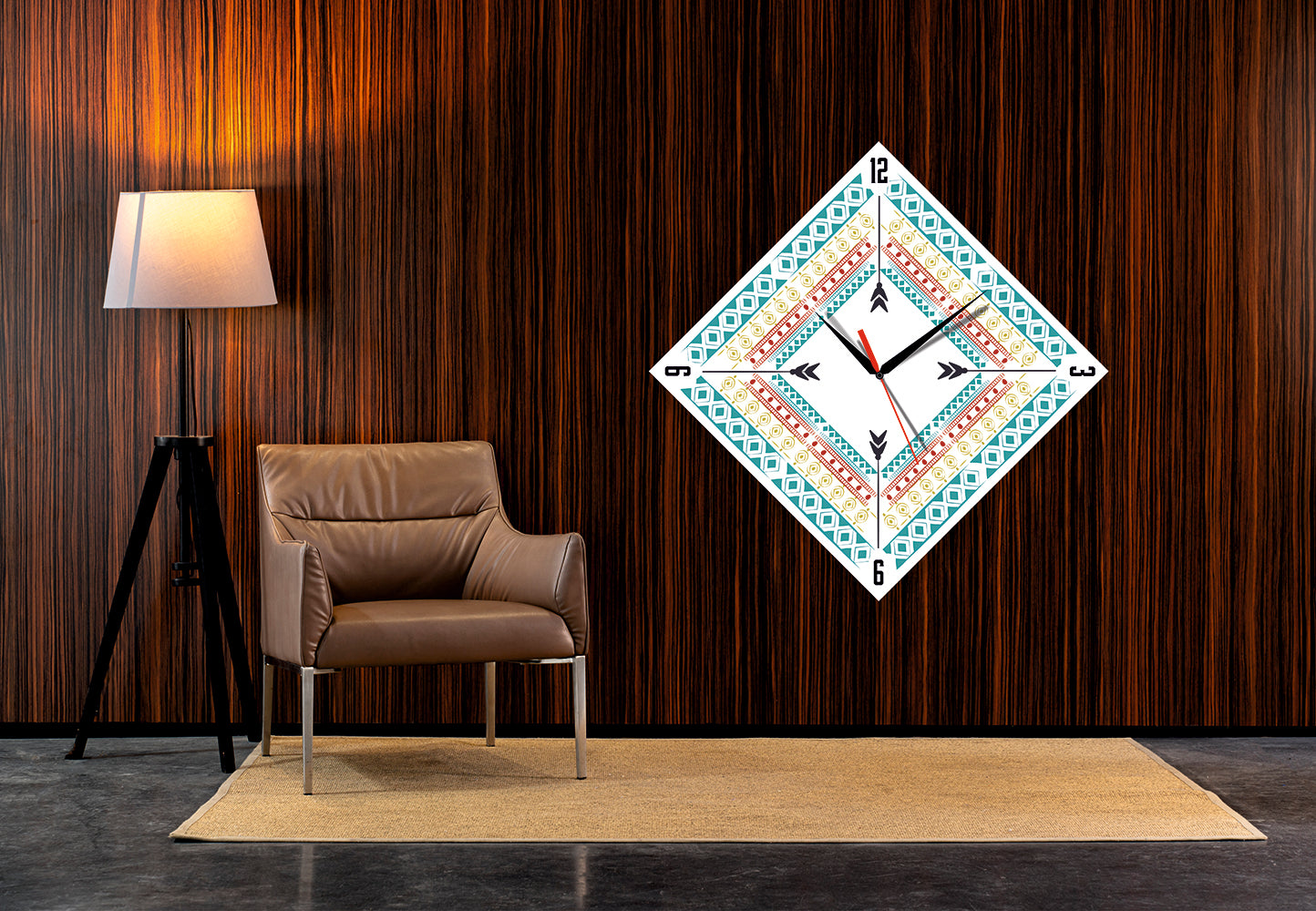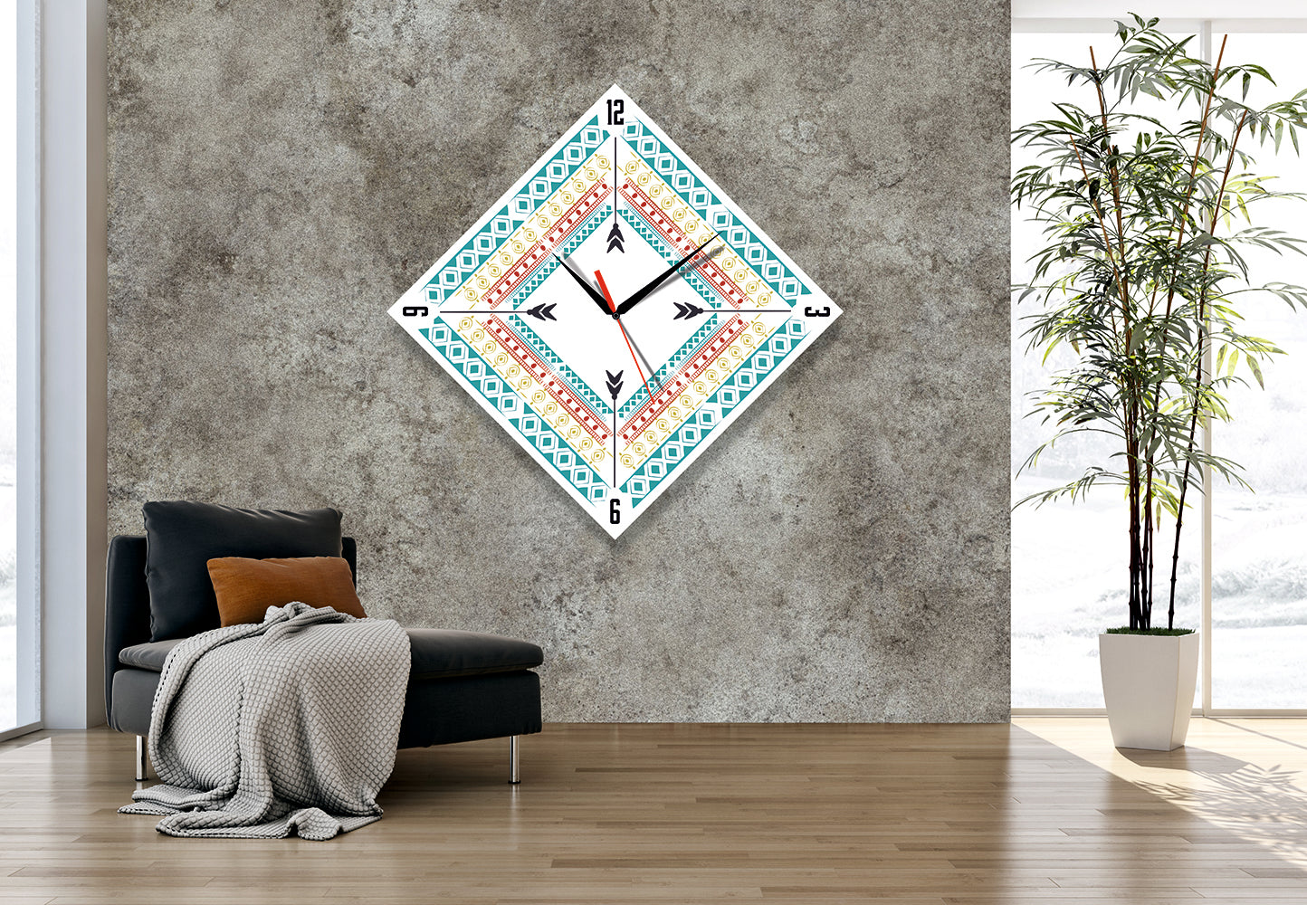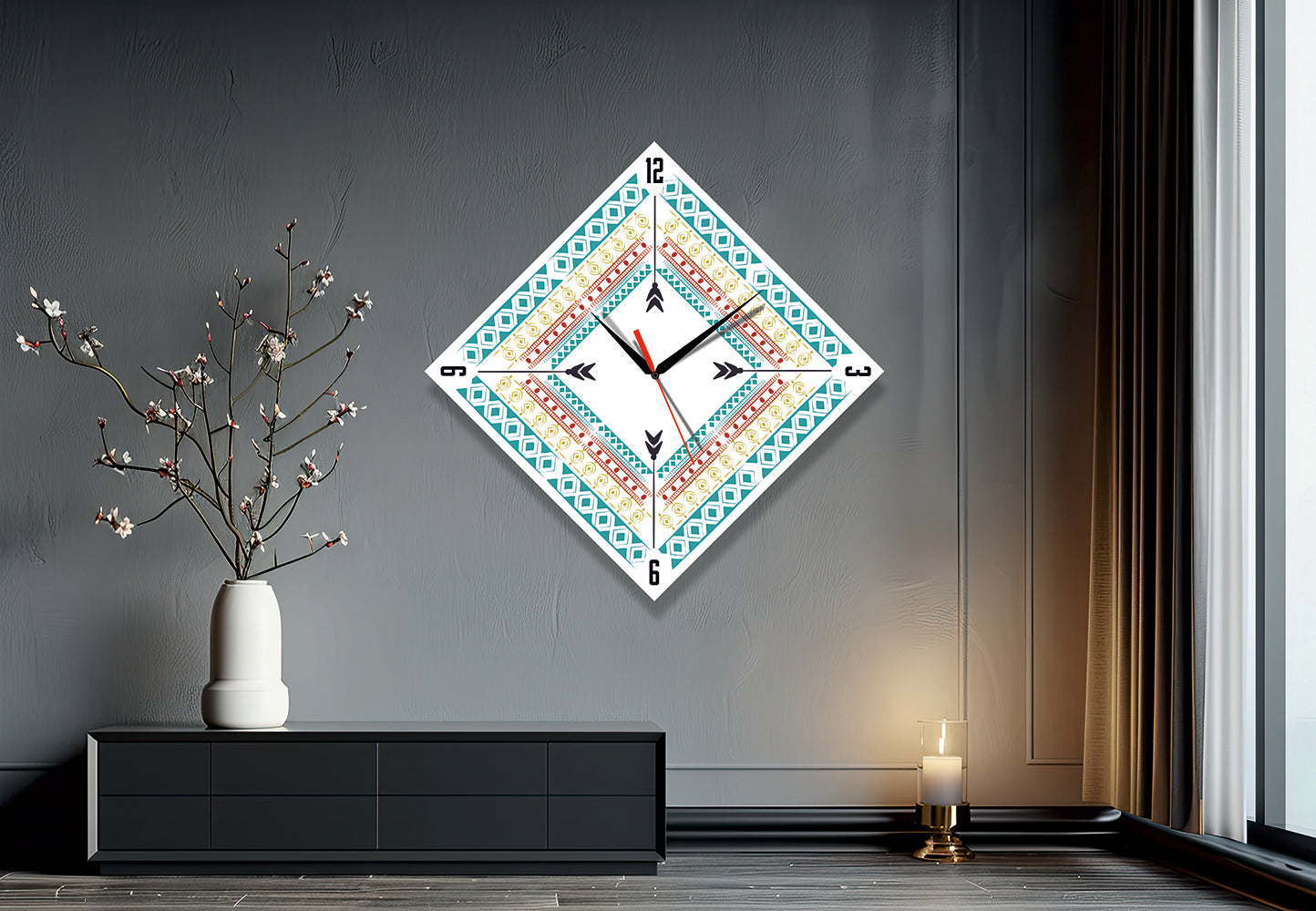 Evinizin en sevdiğiniz köşesinde, zaman sadece akıp gitmez; mekana bir karakter katar. Turkuazın ferahlatıcı etkisi, toprak tonlarının sıcaklığı ve geometrik desenlerin sonsuz döngüsü... Bu özel tasarım duvar saati, sıradan bir zaman göstergesi değil, duvarınızda asılı duran modern bir tablo gibi.