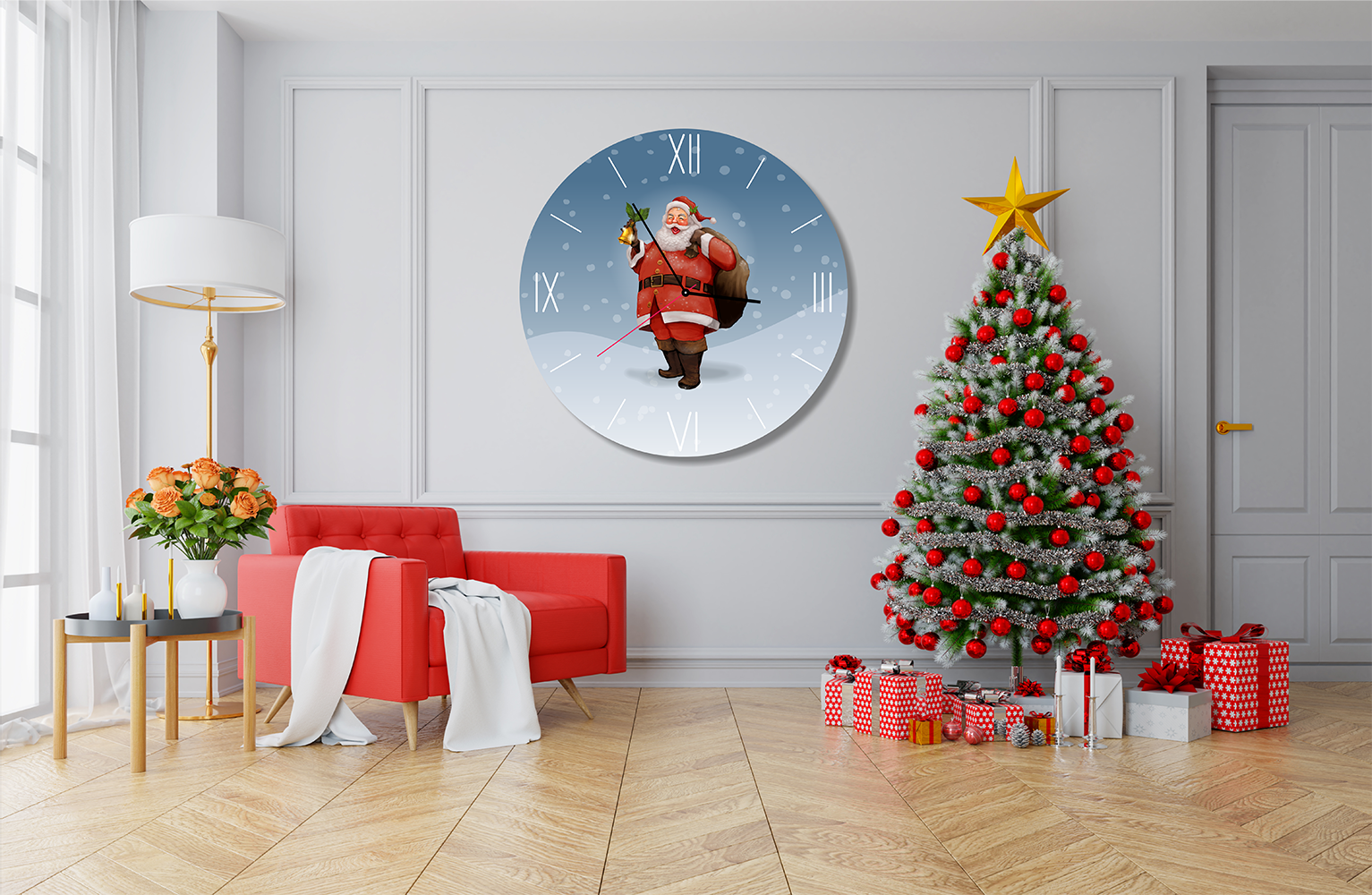 StilCreative Kış Serisi: Altın Çanlı ve Karlı Noel Baba Desenli Dekoratif Saat