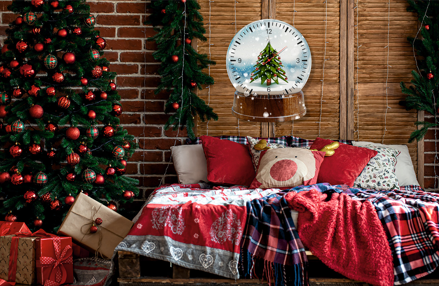 StilCreative Yılbaşı Özel: Kar Küresi Temalı Çam Ağacı Desenli Cam Duvar Saati